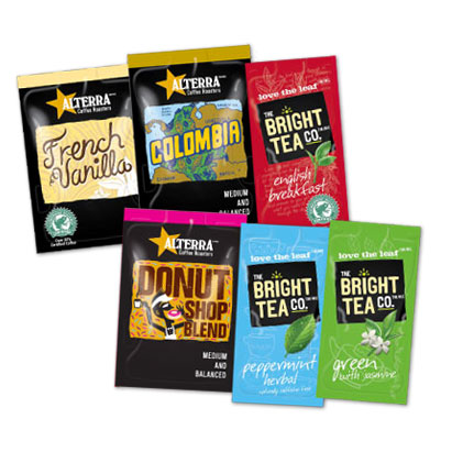 Specializing in the workplace, Alterra Coffee Roasters™ is an SCAA award-winning coffee that offers something for everyone... management, human resources, and employees. This hard-working coffee will raise morale, productivity, and employee satisfaction. Used in the Flavia® Fresh-Release single-serve system, Alterra Coffee Roasters™ offers users over 17 varieties of coffee. Tea lovers will rave about The Bright Tea Company's™ newest blends developed by renowned expert Steven Smith, creator of Taza® and Stash® Teas. Alterra Coffees and Bright Teas are sustainably sourced and utilize only the finest ingredients.